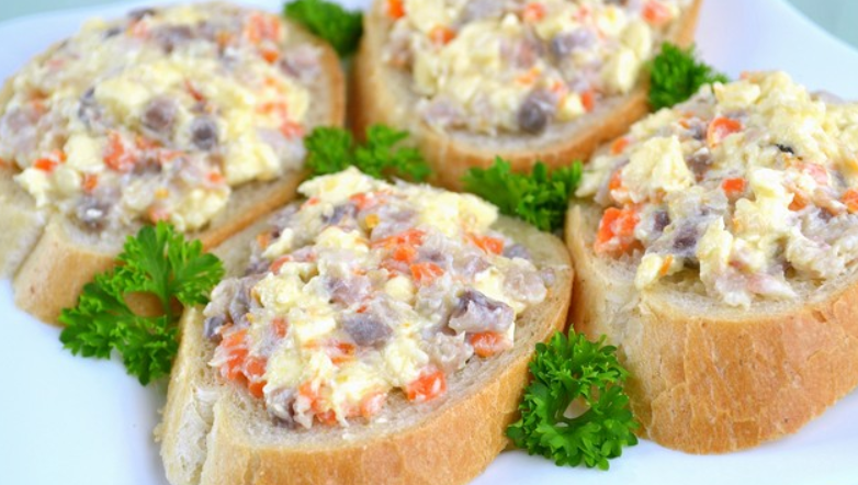 Один из вариантов помазанки из селедки. Лучше всего брать сельдь пряного посола. Для праздничного стола можно подавать на крекере или кружочке огурца, украсить красной икрой.